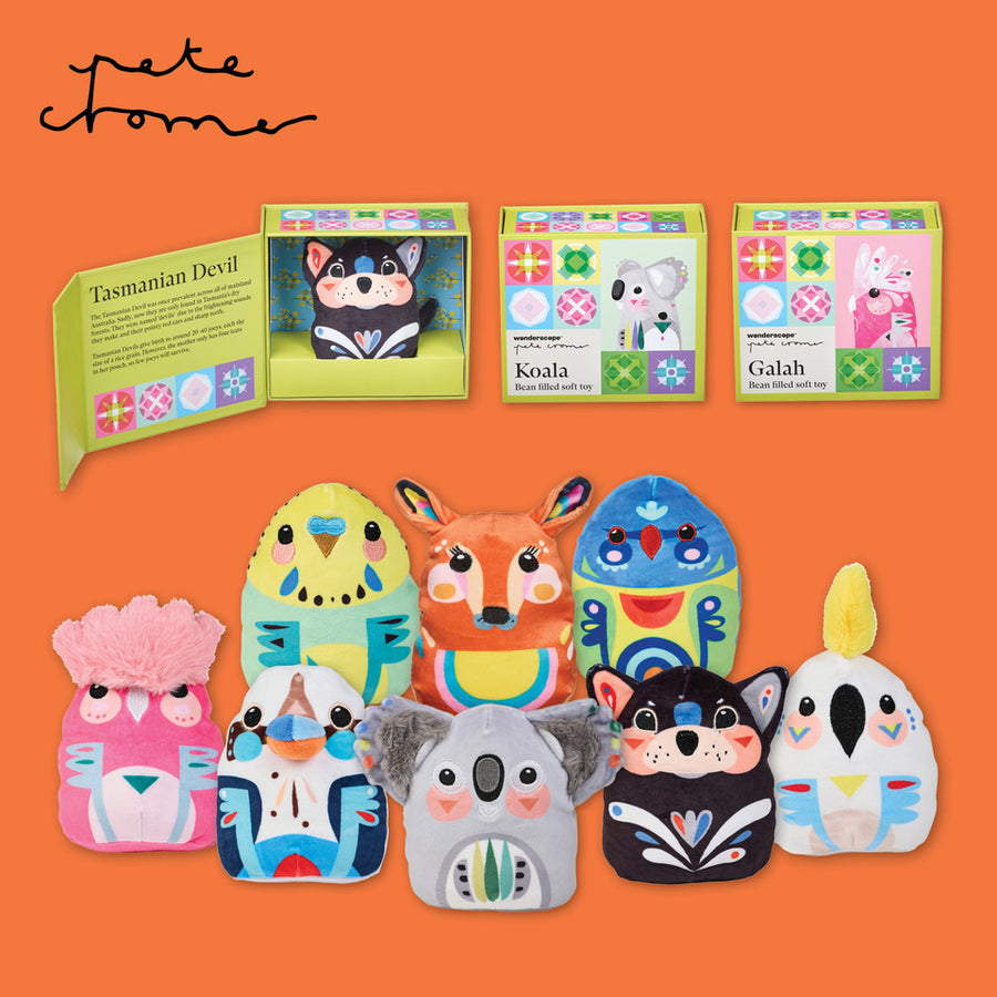 These charming, bean-filled soft animals by renowned contemporary artist Peter Cromer are the ideal souvenir or playtime companion.